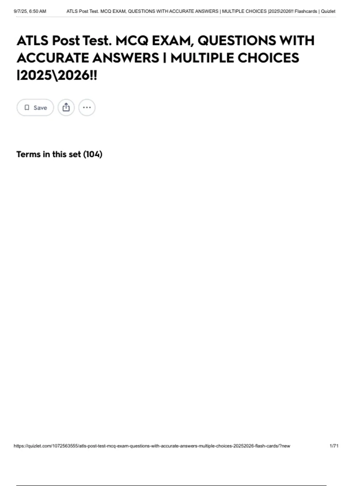 ,9/7/25, 6:50 AM ATLS Post Test. MCQ EXAM, QUESTIONS WITH ACCURATE ANSWERS | MULTIPLE CHOICES |2025\2026!! Flashcards | Quizlet