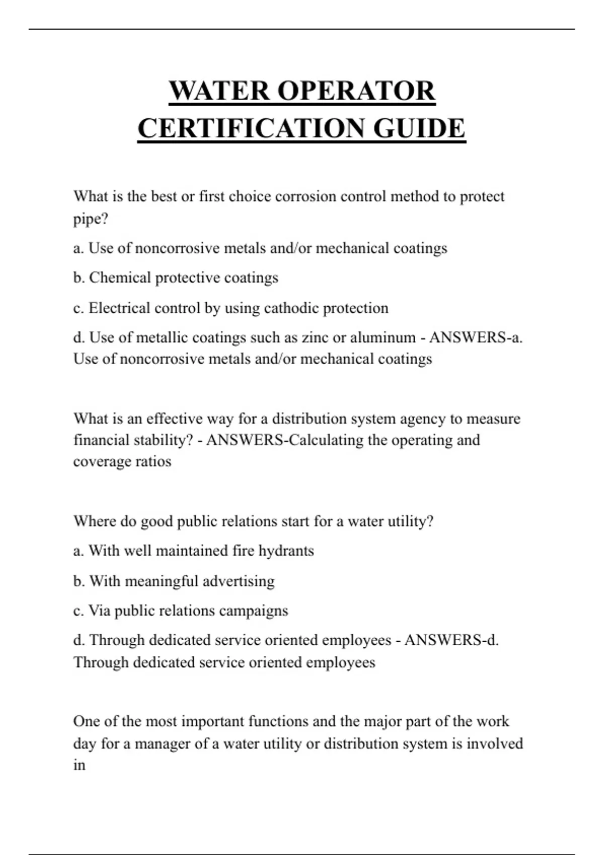 ANSWERS-Recommended in the Initial Distribution System