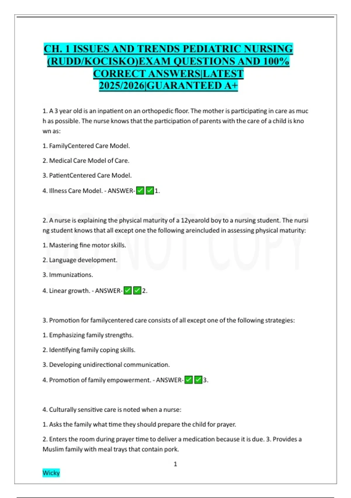 CH. 1 ISSUES AND TRENDS PEDIATRIC NURSING