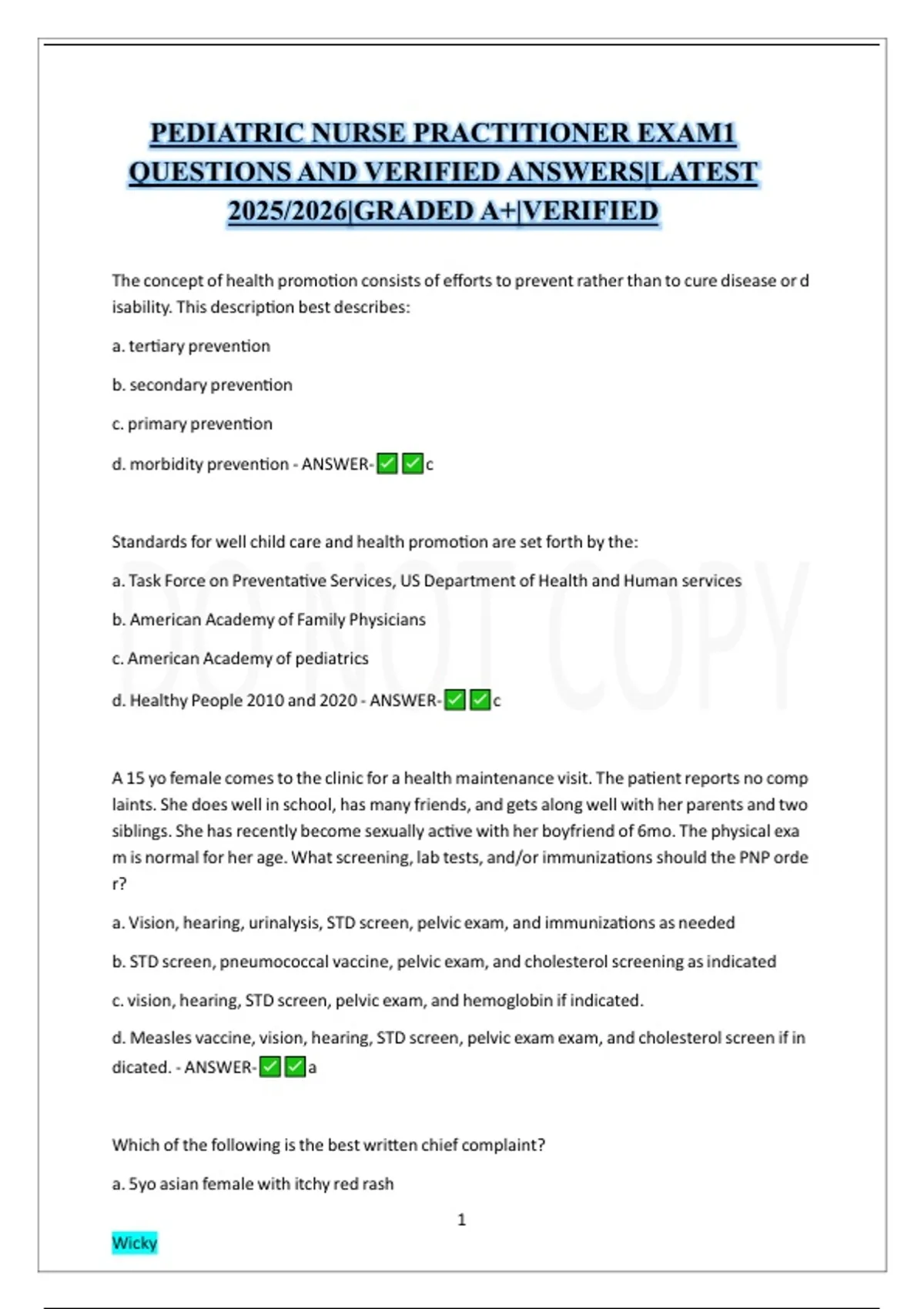 PEDIATRIC NURSE PRACTITIONER EXAM1