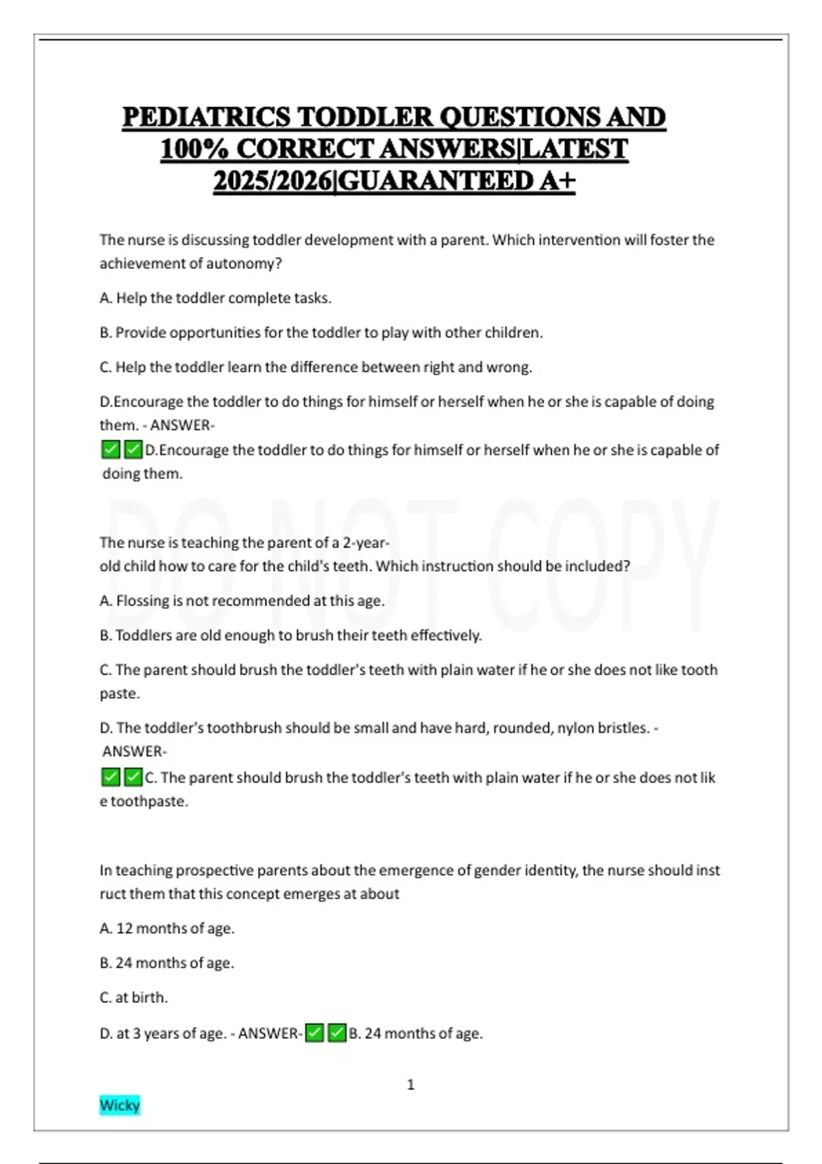 PEDIATRICS TODDLER QUESTIONS AND 100% CORRECT ANSWERS|LATEST 2025/2026|GUARANTEED A+