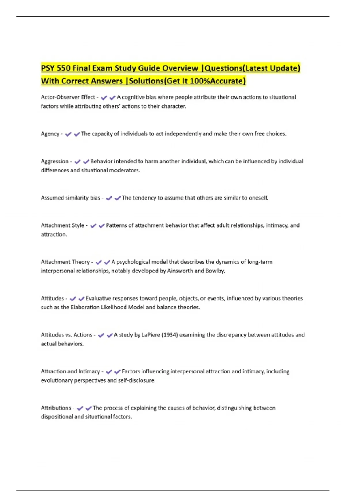 PSY 550 Final Exam Study Guide Overview |Questions(Latest Update) With Correct Answers |Solutions(Get It 100%Accurate)