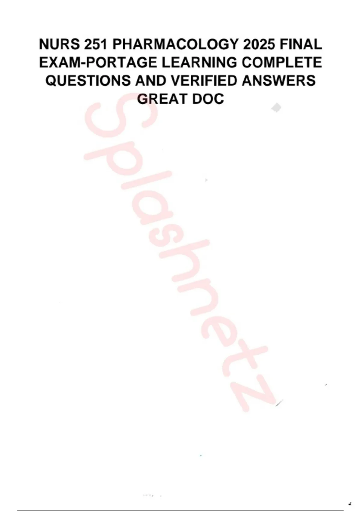 NURS 251 PHARMACOLOGY 2025 FINAL EXAM PORTAGE LEARNING COMPLETE QUESTIONS AND VERIFIED ANSWERS