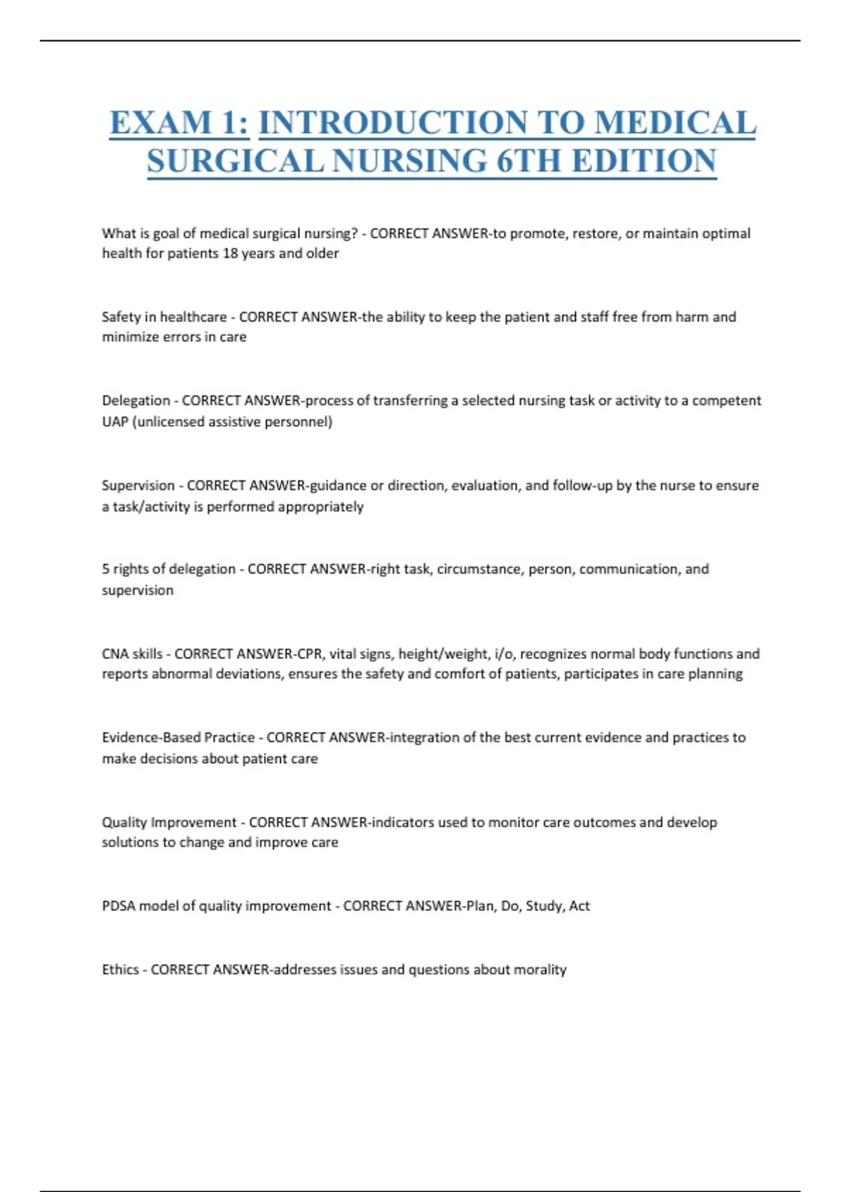EXAM 1: INTRODUCTION TO MEDICAL