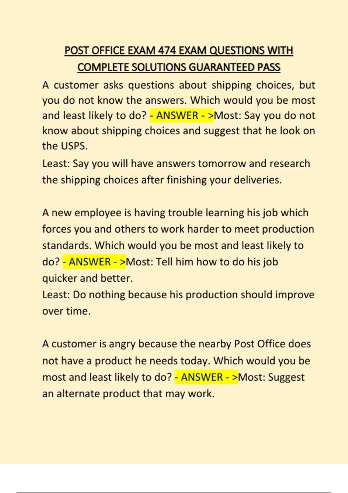 POST_OFFICE_EXAM_474_EXAM_QUESTIONS_WITH_COMPLETE_SOLUTIONS_GUARANTEED PASS