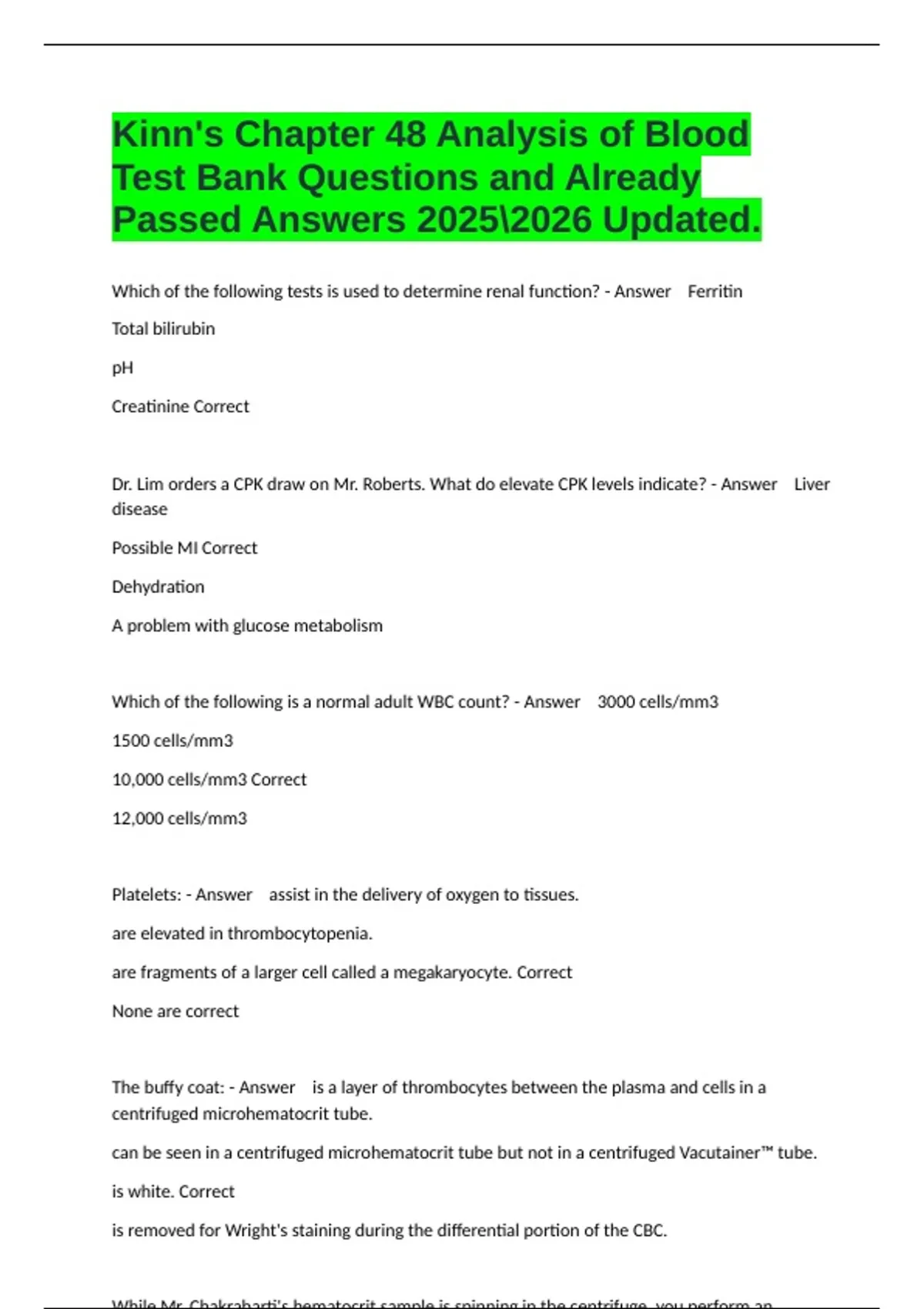 Dr. Lim orders a CPK draw on Mr. Roberts. What do elevate CPK levels indicate? - Answer Liver