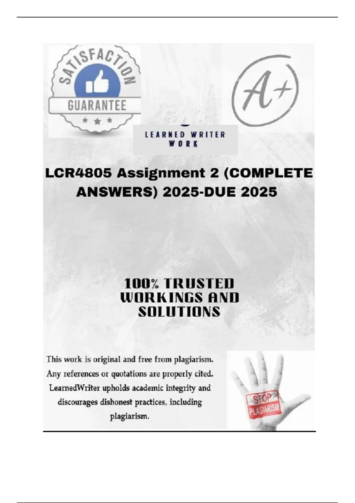 ,LCR4805 Assignment 2 (COMPLETE ANSWERS) 2025-