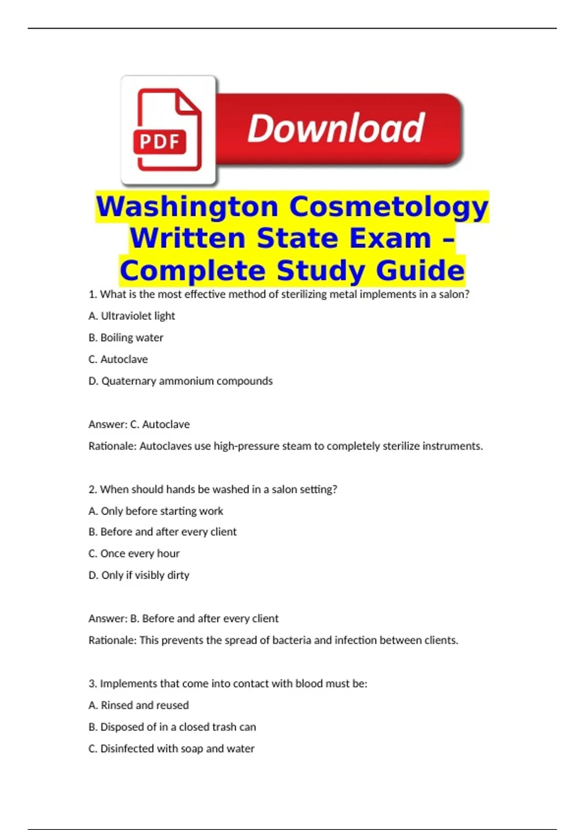 1. What is the most effective method of sterilizing metal implements in a salon?