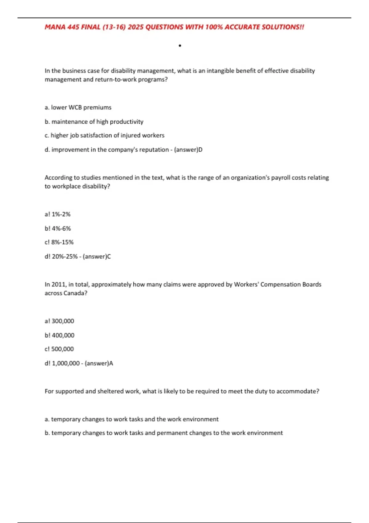 , MANA 445 FINAL (13-16) 2025 QUESTIONS WITH 100% ACCURATE SOLUTIONS!!
