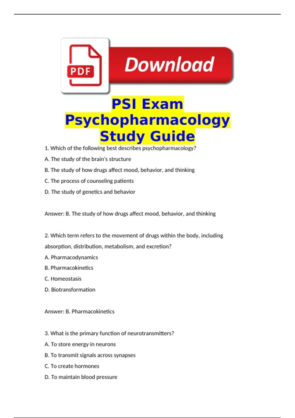 Answer: B. The study of how drugs affect mood, behavior, and thinking