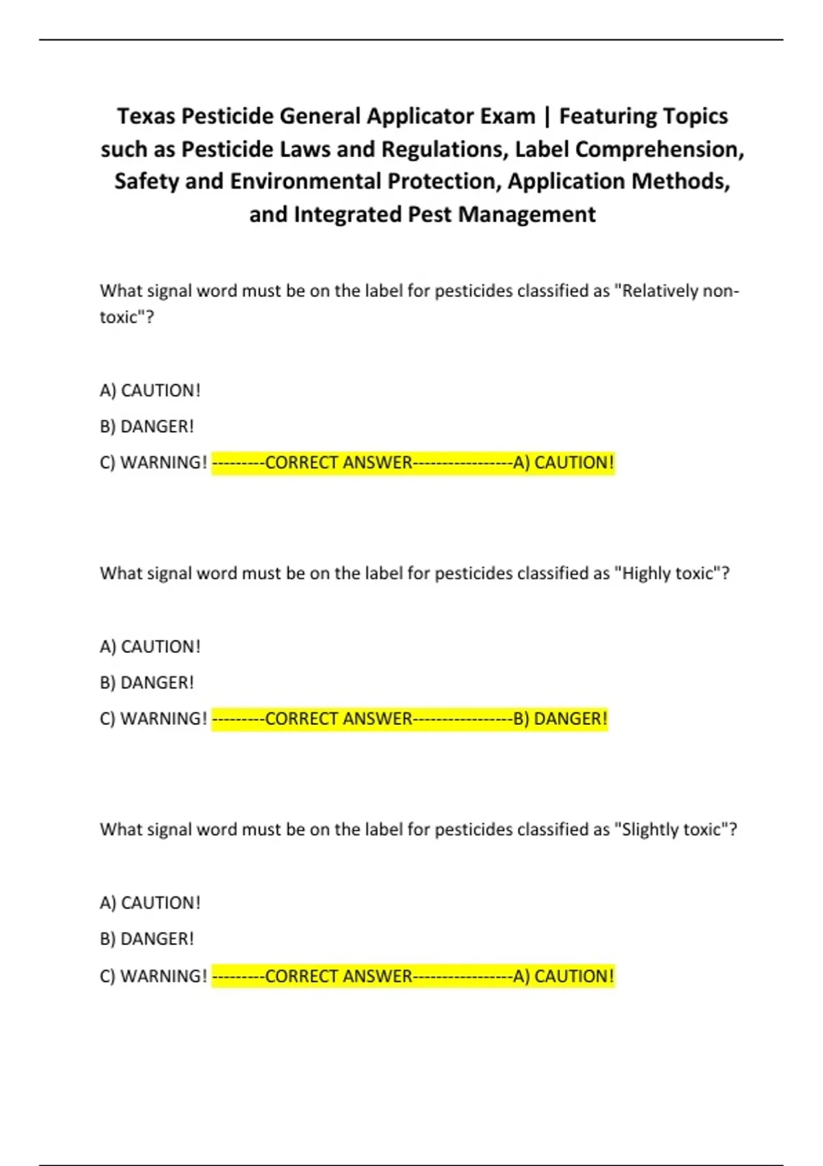 Texas Pesticide General Applicator Exam | Featuring Topics