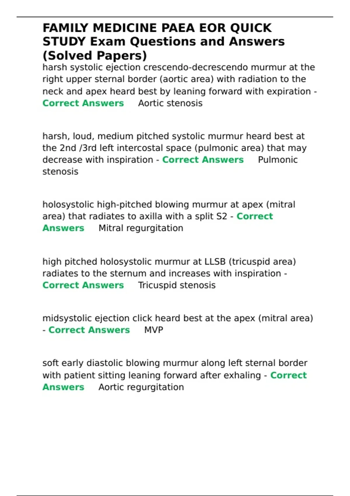 FAMILY MEDICINE PAEA EOR QUICK STUDY Exam Questions and Answers (Solved Papers).