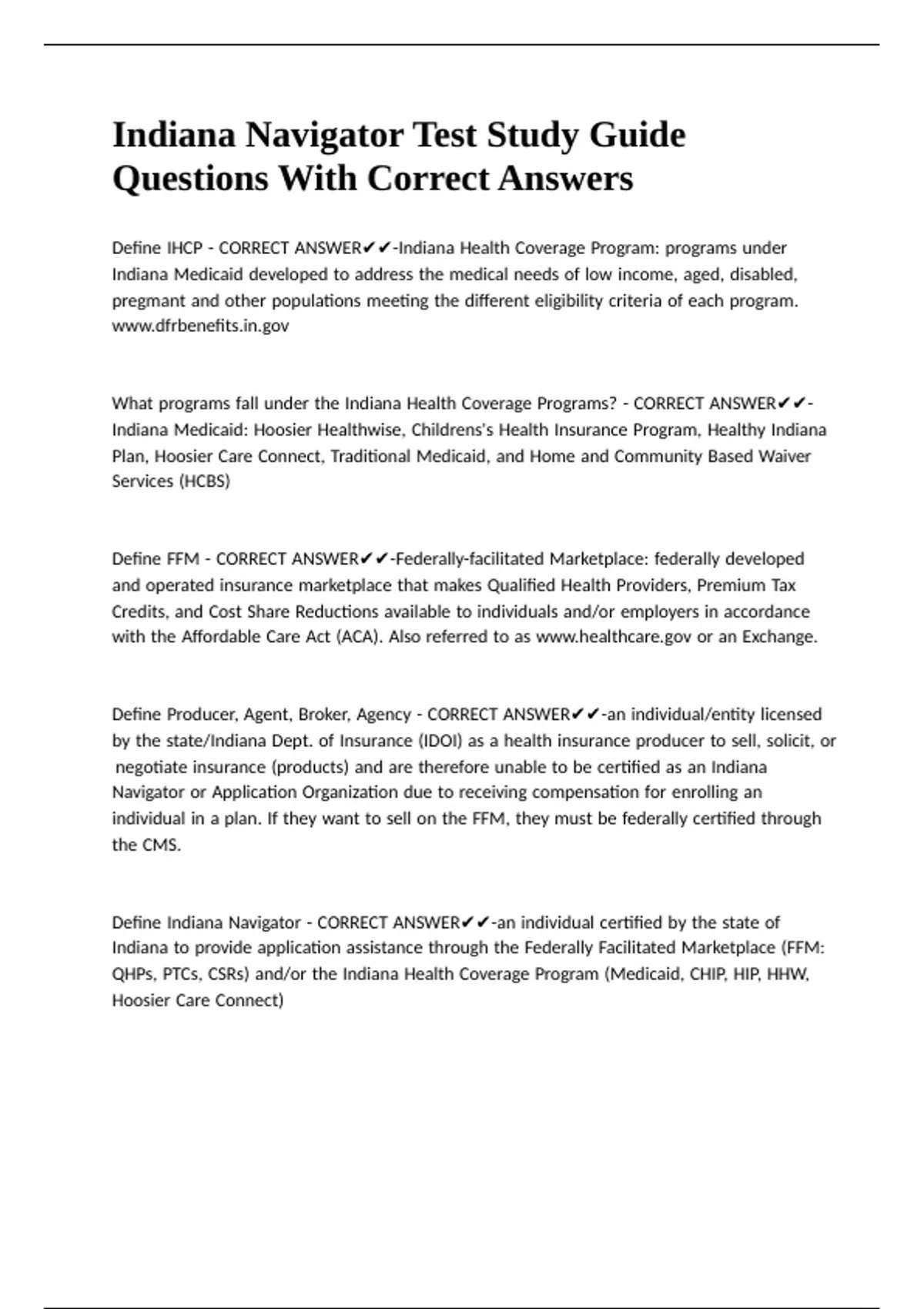 Indiana Navigator Test Study Guide Questions With Correct Answers