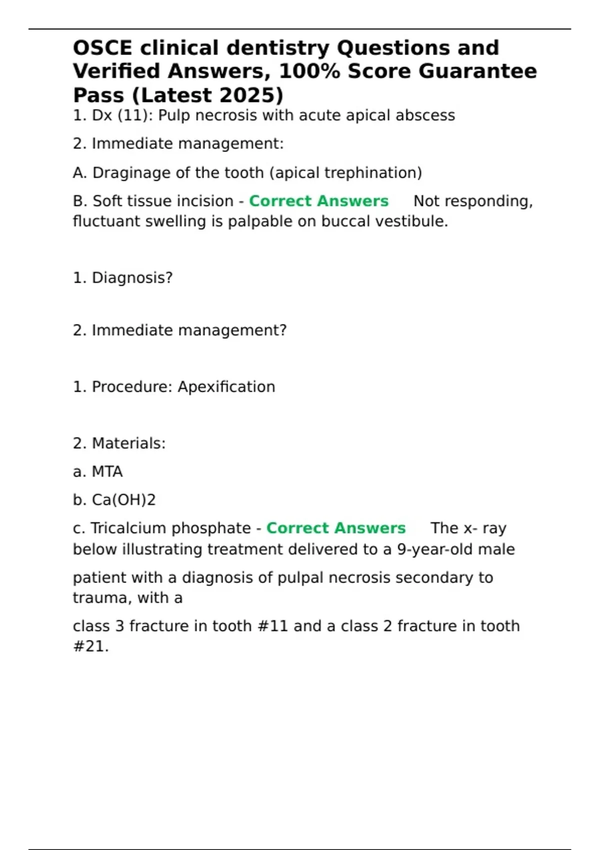 1. Dx (11): Pulp necrosis with acute apical abscess