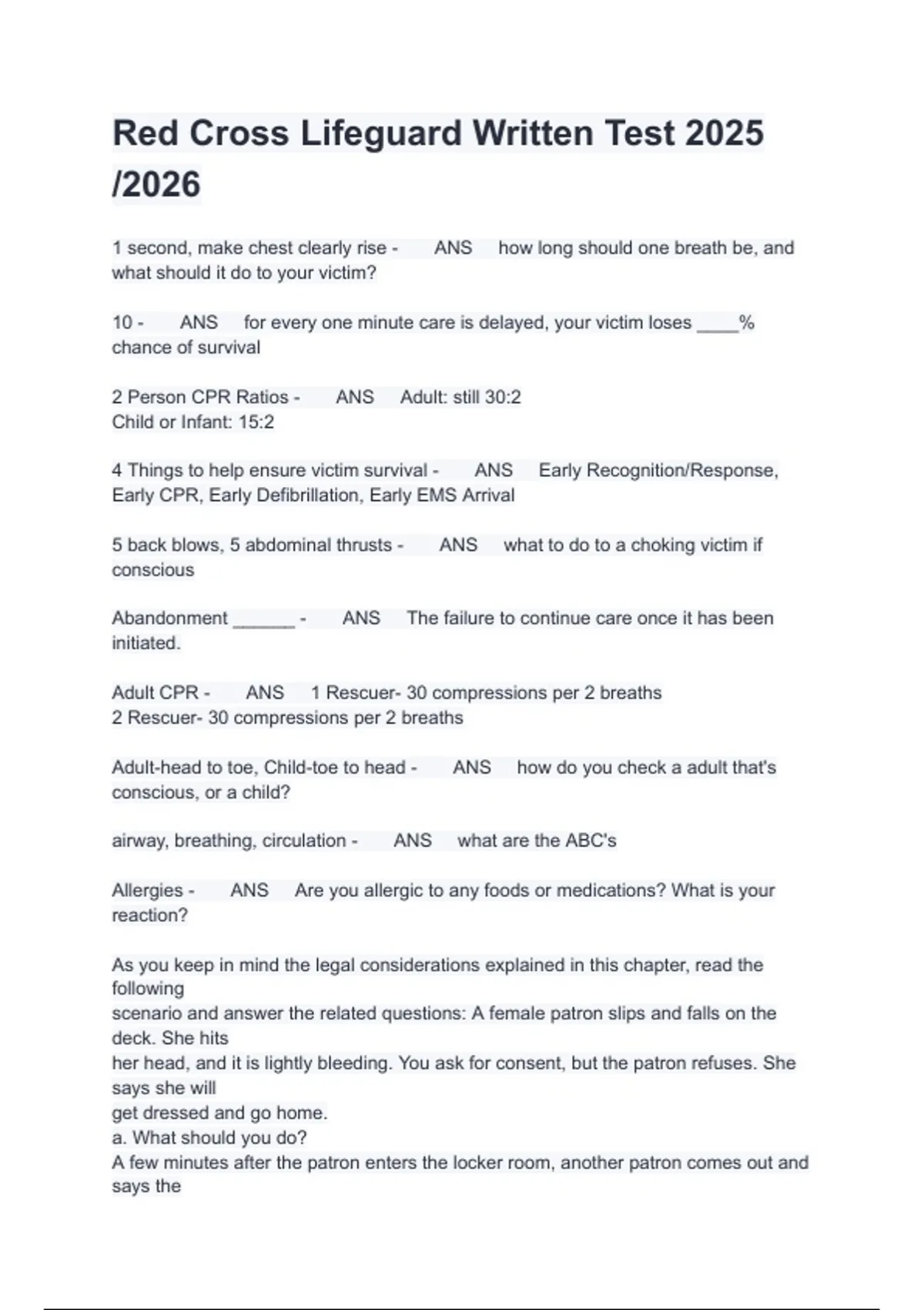 Adult CPR - ANS 1 Rescuer- 30 compressions per 2 breaths