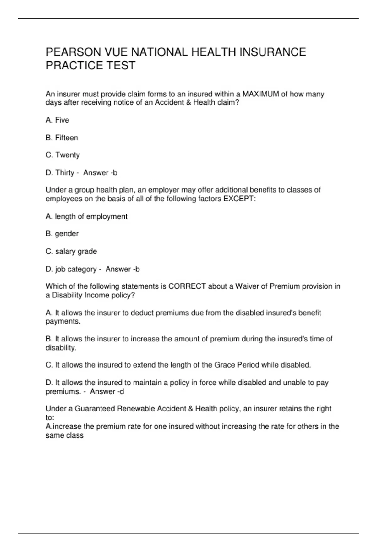PEARSON VUE NATIONAL HEALTH INSURANCE PRACTICE TEST