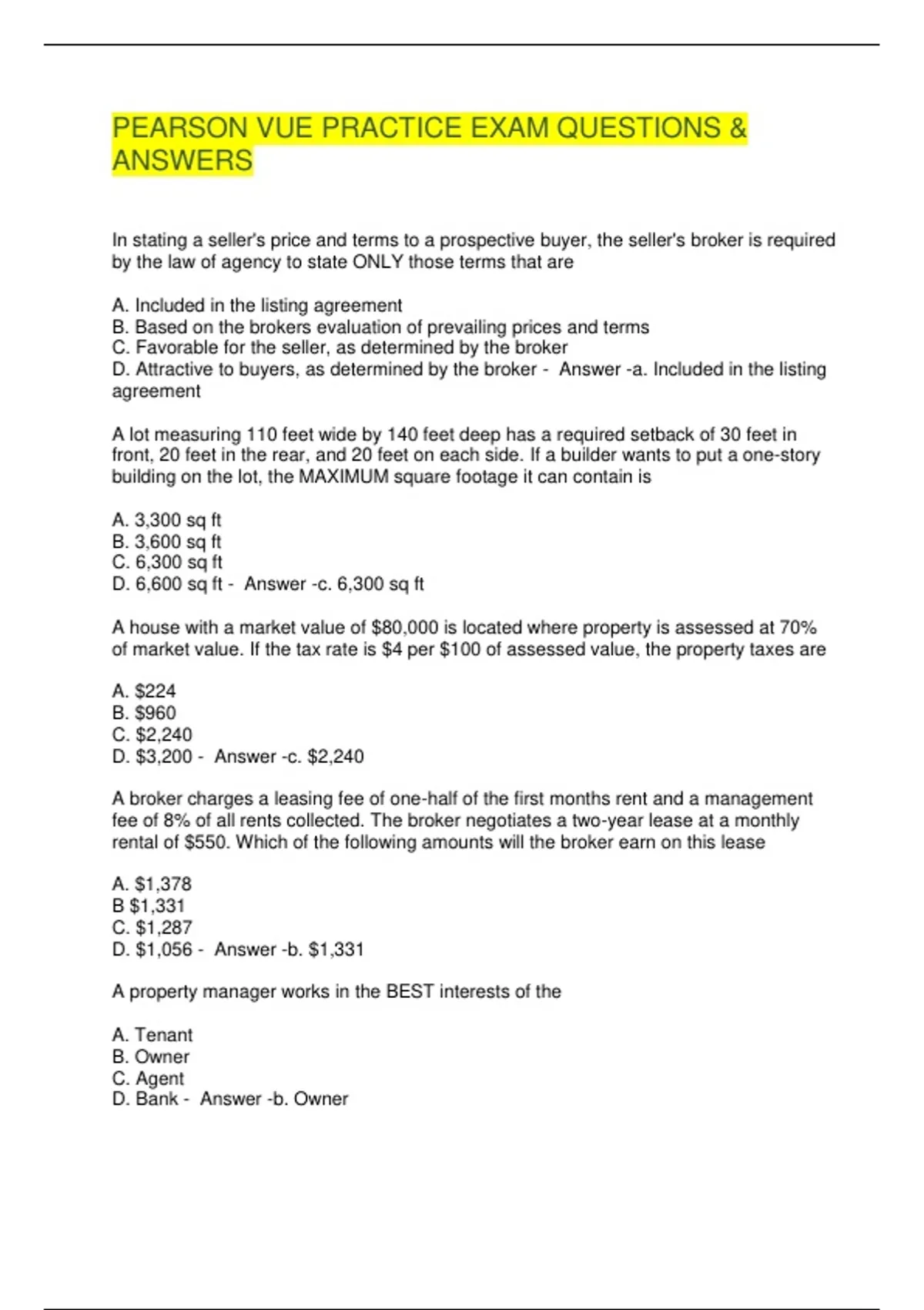 PEARSON VUE PRACTICE EXAM QUESTIONS &