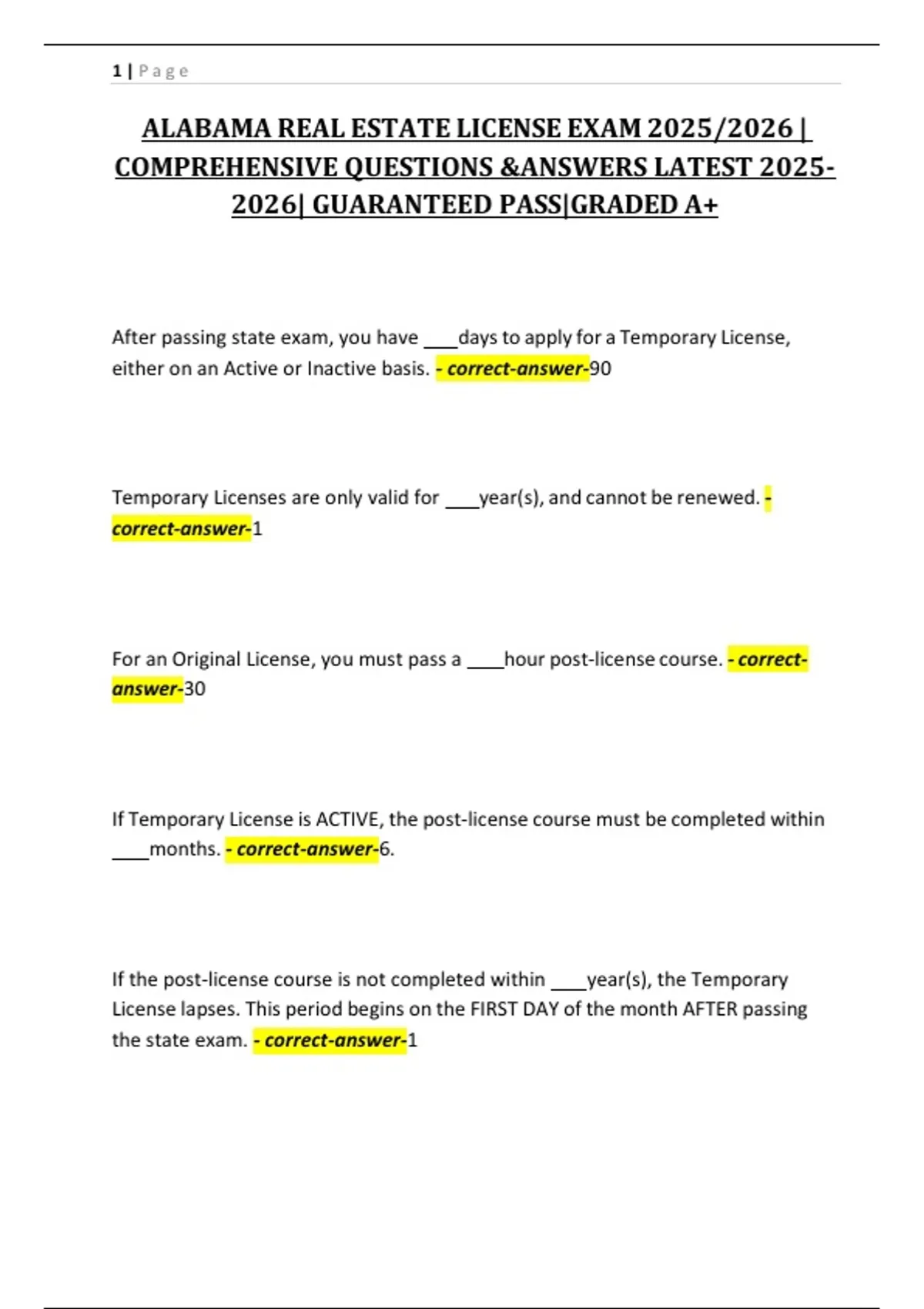 ALABAMA REAL ESTATE LICENSE EXAM 2025/2026 |