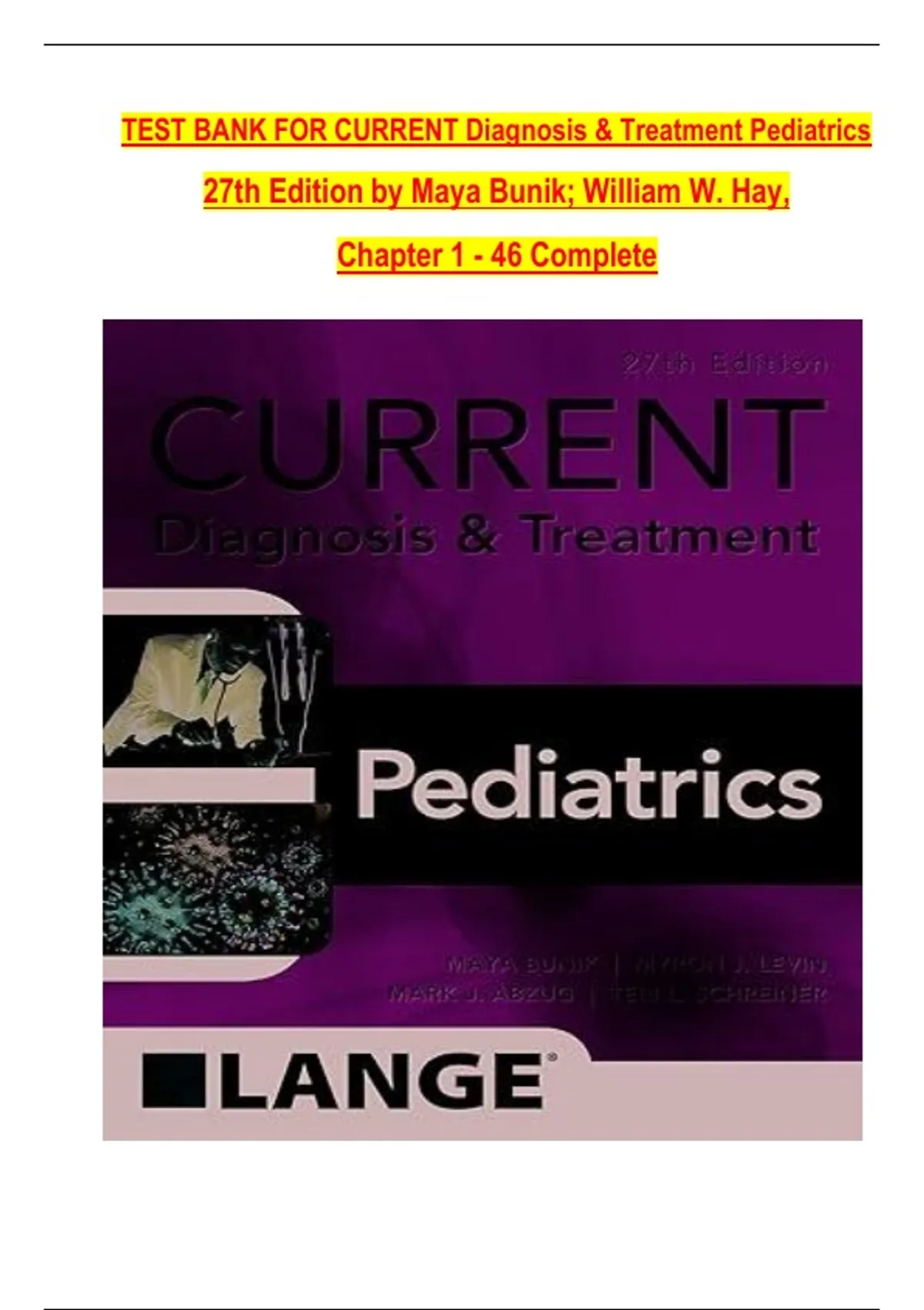 Current Diagnosis and Treatment Pediatrics, 27th Edition Test Bank Multiple