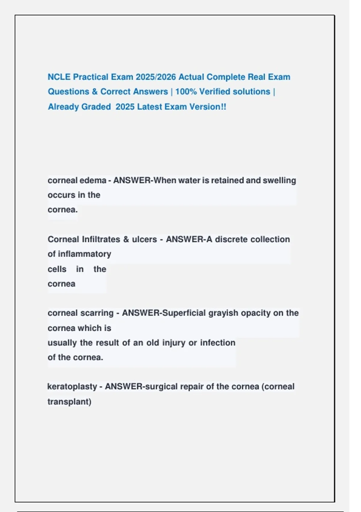 NCLE Practical Exam 2025/2026 Actual Complete Real Exam Questions & Correct Answers | 100% Verified solutions | Already Graded 2025 Latest Exam Version!! NCLE Practical Exam 2025/2026 Actual Complete Real Exam Questions & Correct Answers | 100% Verified solutions | Already Graded 2025 Latest Exam Version!! NCLE Practical Exam 2025/2026 Actual Complete Real Exam Questions & Correct Answers | 100% Verified solutions | Already Graded 2025 Latest Exam Version!! NCLE Practical Exam 2025/2026 Actual Complete Real Exam Questions & Correct Answers | 100% Verified solutions | Already Graded 2025 Latest Exam Version!! NCLE Practical Exam 2025/2026 Actual Complete Real Exam Questions & Correct Answers | 100% Verified solutions | Already Graded 2025 Latest Exam Version!! NCLE Practical Exam 2025/2026 Actual Complete Real Exam Questions & Correct Answers | 100% Verified solutions | Already Graded 2025 Latest Exam Version!!