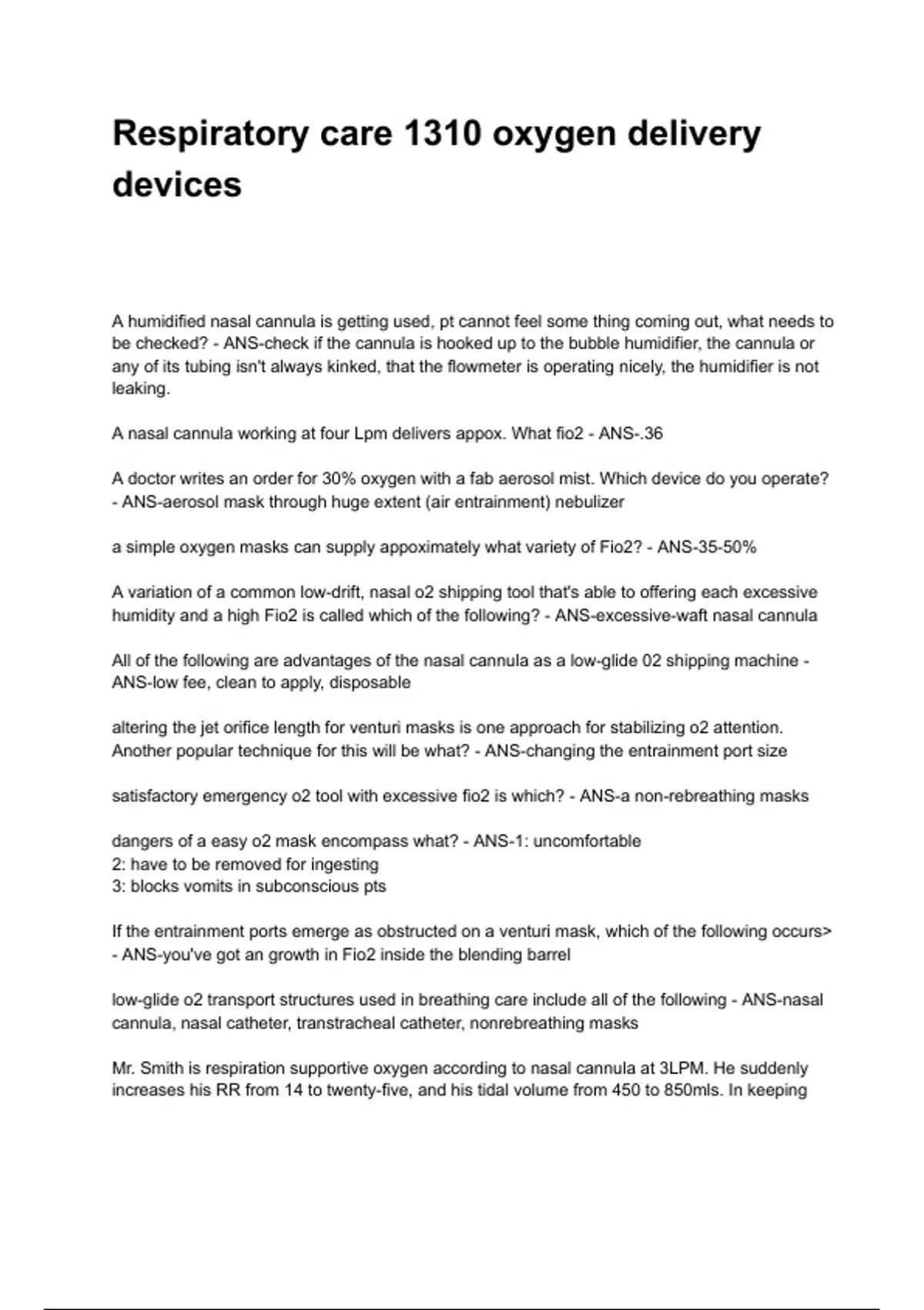 Respiratory care 1310 oxygen delivery devices NEWEST 2025/2026 ACTUAL EXAM COMPLETE QUESTIONS AND CORRECT DETAILED ANSWERS (VERIFIED ANSWERS) |ALREADY GRADED A+||BRAND NEW!!