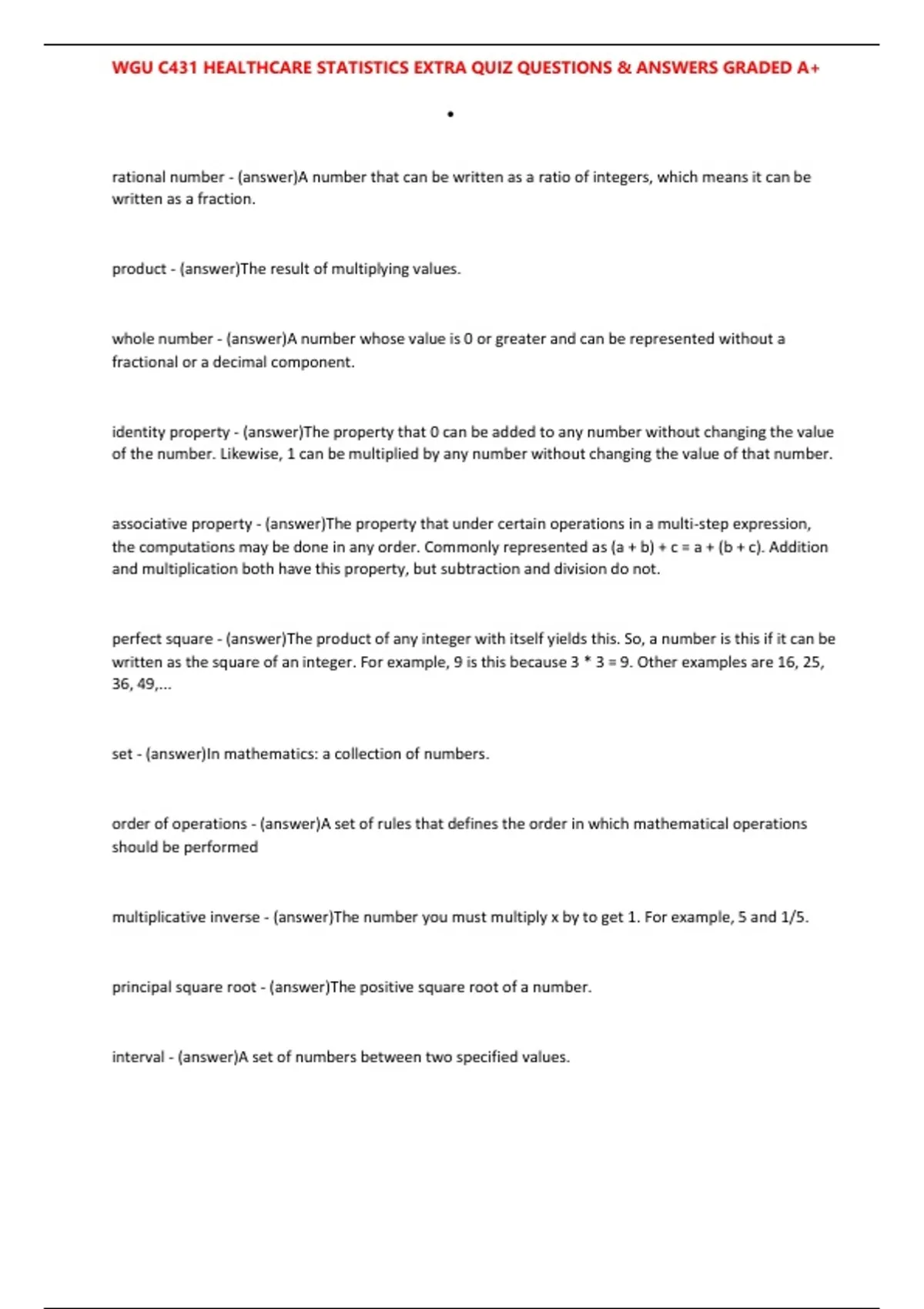 , WGU C431 HEALTHCARE STATISTICS EXTRA QUIZ QUESTIONS & ANSWERS GRADED A+