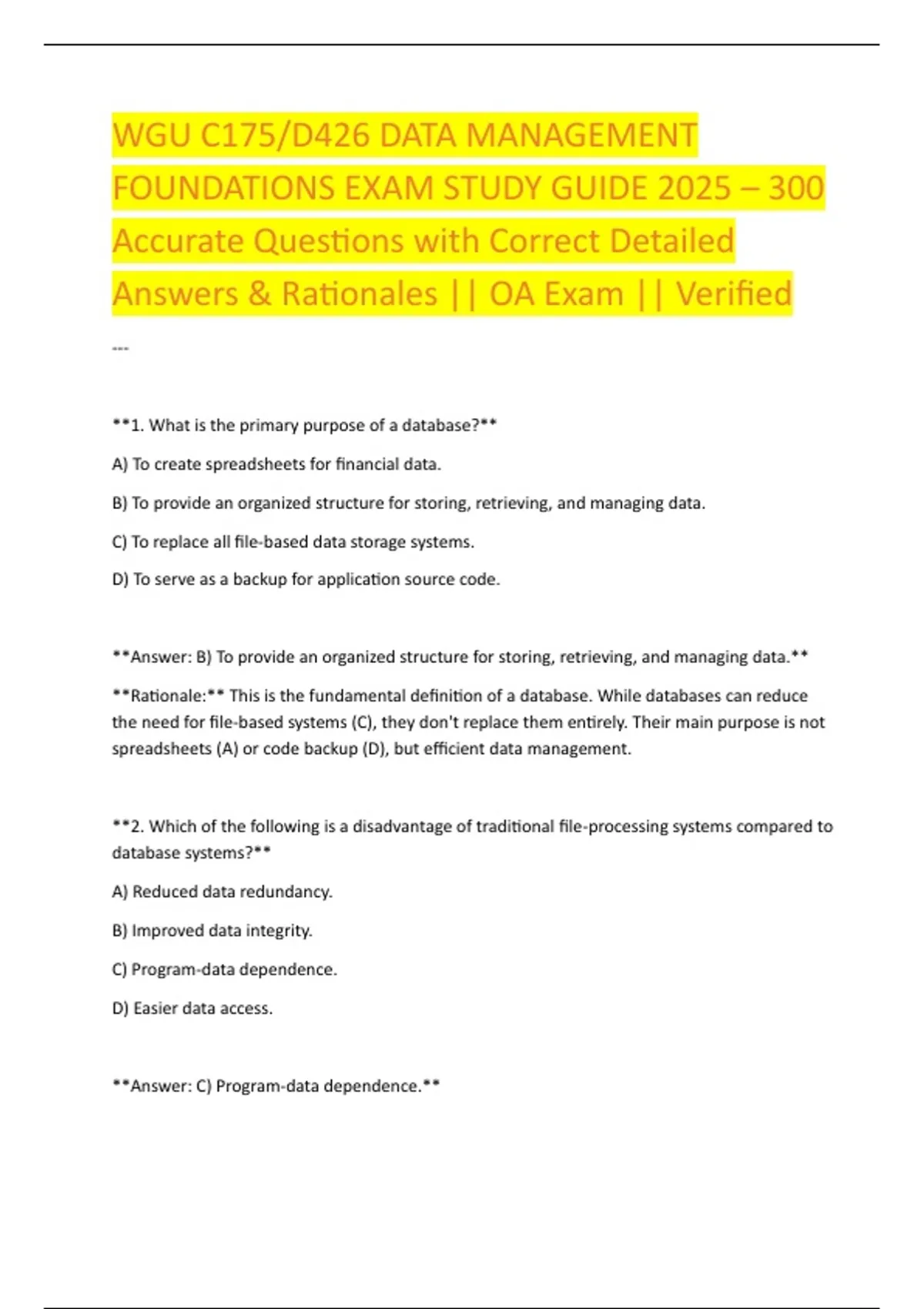Answers & Rationales || OA Exam || Verified