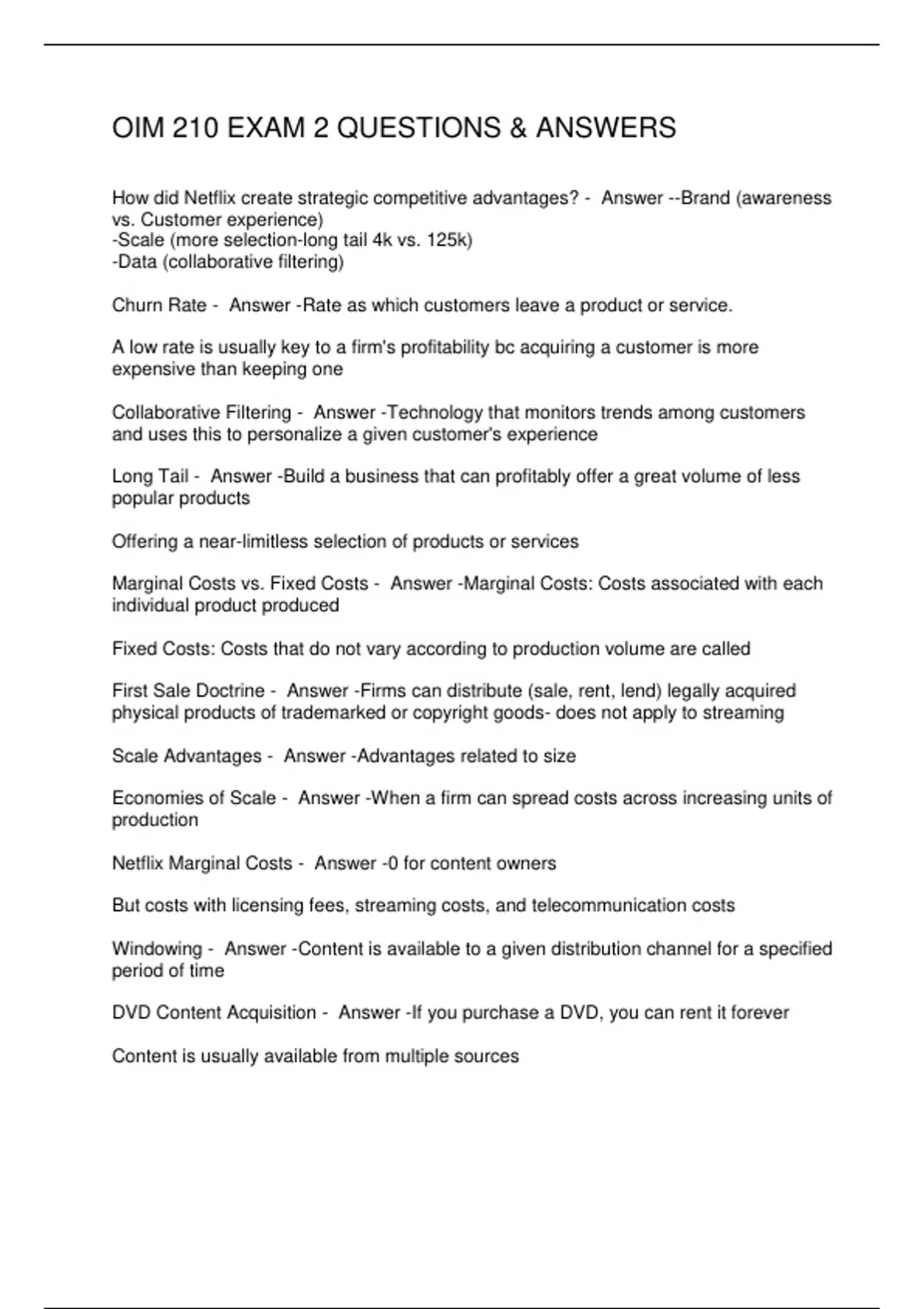 OIM 210 EXAM 2 QUESTIONS & ANSWERS