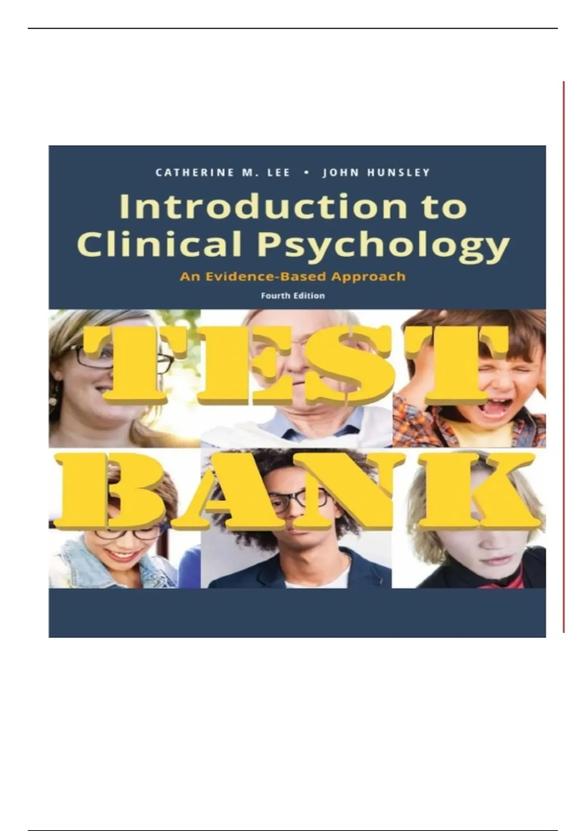 ACE YOUR NEXT EXAM! Get the ULTIMATE Study Guide for Introduction to Clinical Psychology, 4th Edition by Hunsley & Lee! Struggling to prepare for your midterms or finals? This is the complete, official Test Bank that accompanies the textbook "Introduction to Clinical Psychology: An Evidence-Based Approach, 4th Edition" by Catherine M. Lee and John Hunsley. WHAT YOU GET: Full Digital Download: Instant access to the entire test bank in PDF format. All Chapters Included: From Chapter 1 (The Evolution of Clinical Psychology) to Chapter 10 (Prevention) and beyond! Multiple Choice & Short Answer: Hundreds of practice questions with CORRECT ANSWERS AND RATIONALES provided. Page References: Every answer is linked directly to the textbook page, making your review efficient and targeted. Perfect for Self-Testing: Simulate the actual exam environment and identify your weak spots before the big day. IDEAL FOR COURSES LIKE: This resource is an essential study aid for university courses such as PSYC 311, PSYC 310, CLP 4143, Psychology 360, or any undergraduate or graduate-level Introduction to Clinical Psychology course. WHY CHOOSE THIS? Save Time: No more searching for practice questions. Everything is in one place. Boost Your Confidence: Walk into your exam knowing you've practiced with material that mirrors what your professor will test. Improve Your Grade: Understand the why behind the answers with detailed rationales, moving beyond simple memorization to true comprehension. Proven Resource: This is the exact material used by instructors to create exams and quizzes. Invest in your academic success and download this invaluable study tool today!
