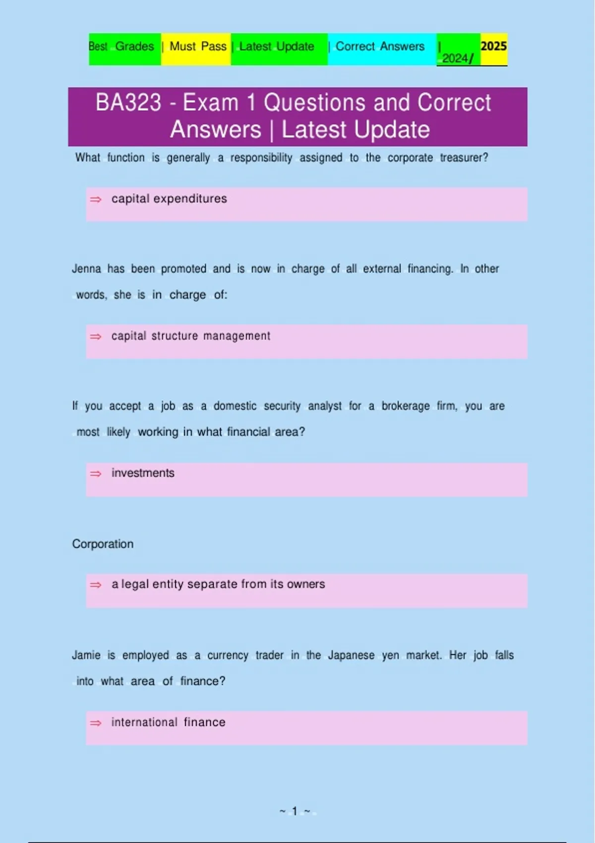 BA323 - Exam 1 Questions and Correct