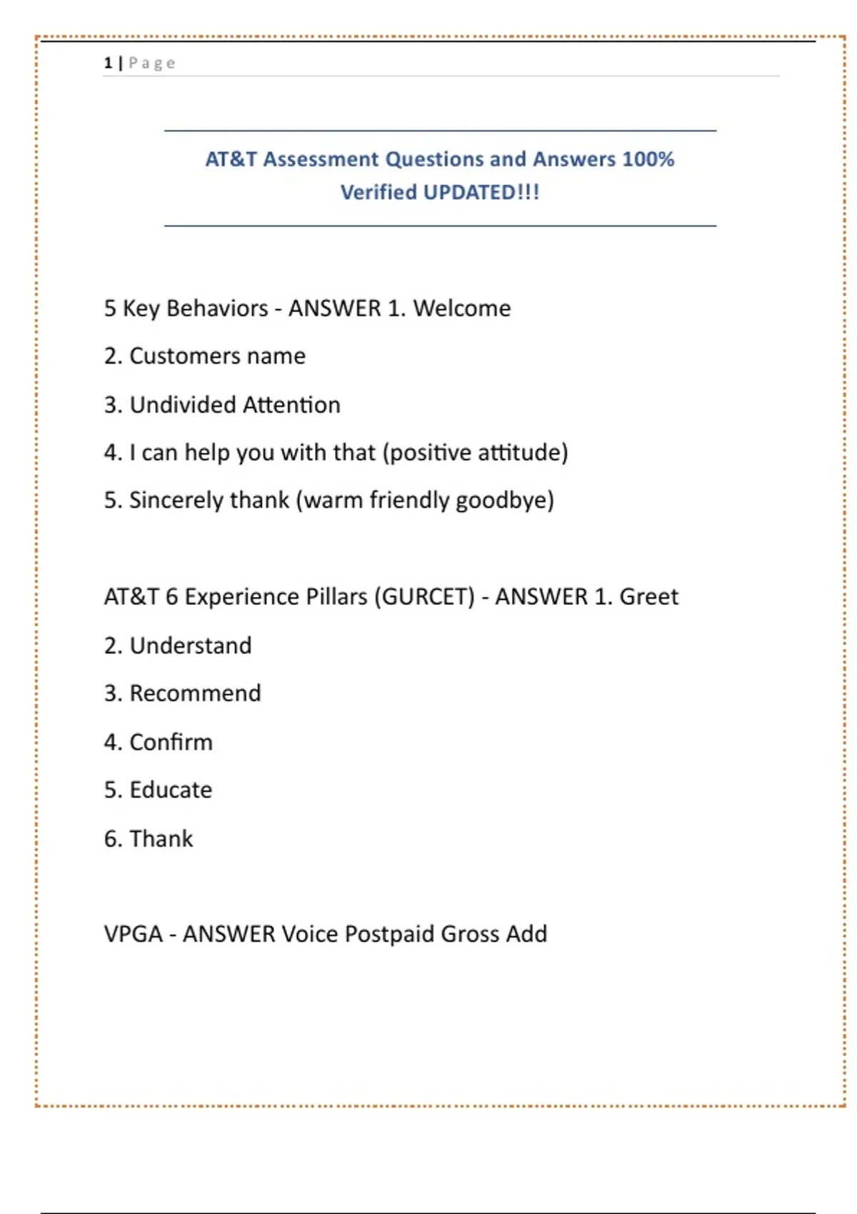 AT&T 6 Experience Pillars (GURCET) - ANSWER 1. Greet