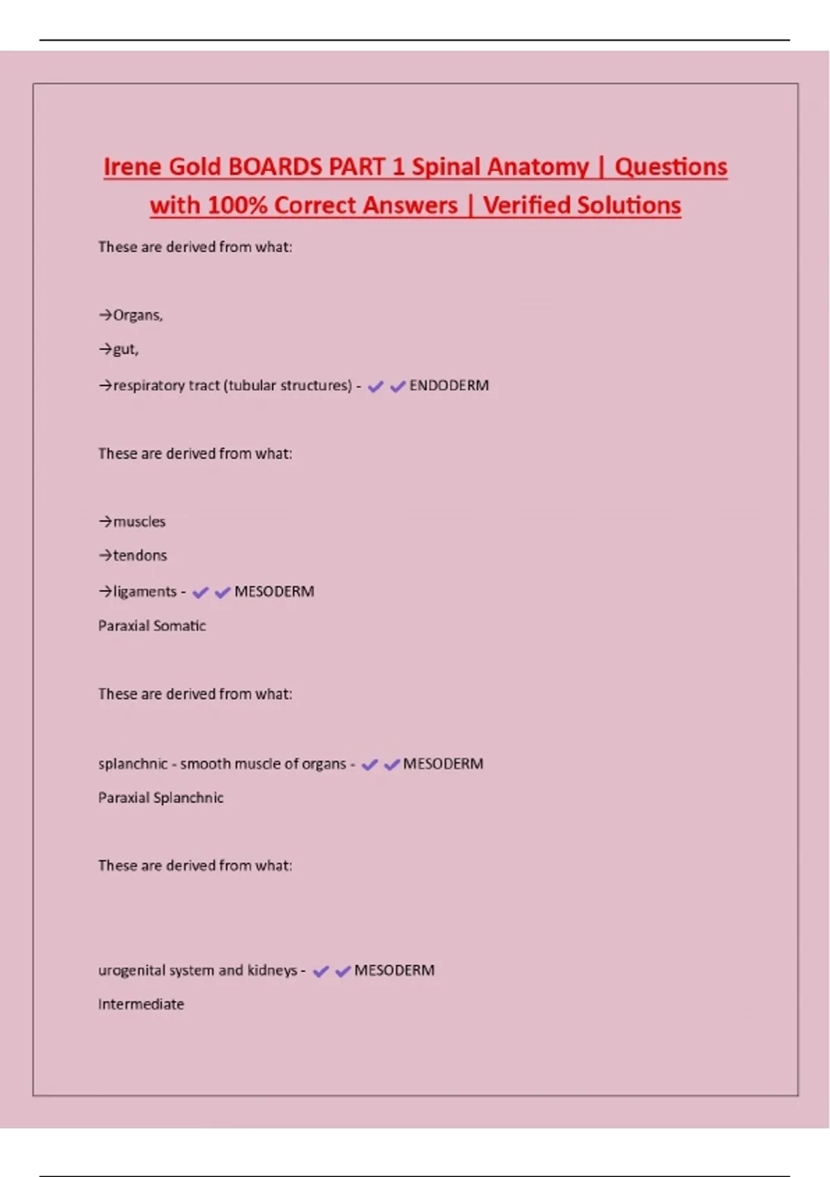 Irene Gold BOARDS PART 1 Spinal Anatomy | Questions with 100% Correct Answers | Verified Solutions