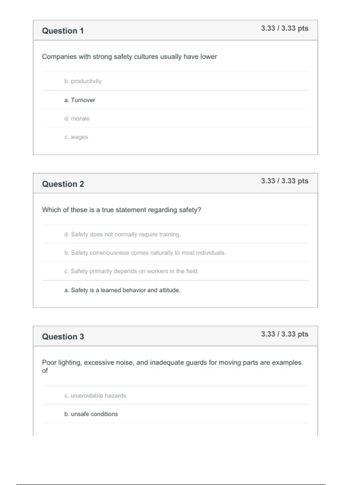 orrect! a. Safety is a learned behavior and attitude.
