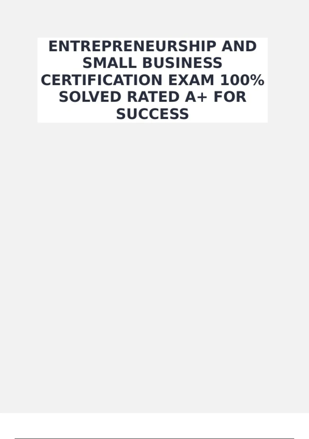 ENTREPRENEURSHIP AND SMALL BUSINESS CERTIFICATION EXAM 100% SOLVED RATED A+ FOR SUCCESS