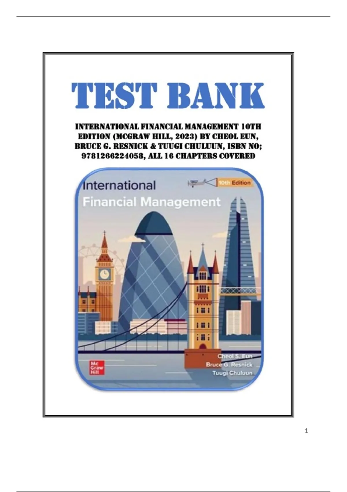 Test Bank for International Financial Management 10th Edition (McGraw Hill, 2023) by Cheol Eun, Bruce G. Resnick & Tuugi Chuluun, Isbn no; 9781266224058, all 16 Chapters Covered