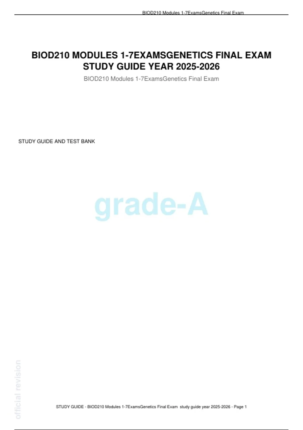 STUDY GUIDE - BIOD210 Modules 1-7ExamsGenetics Final Exam study guide year 2025-2026 - Page 1