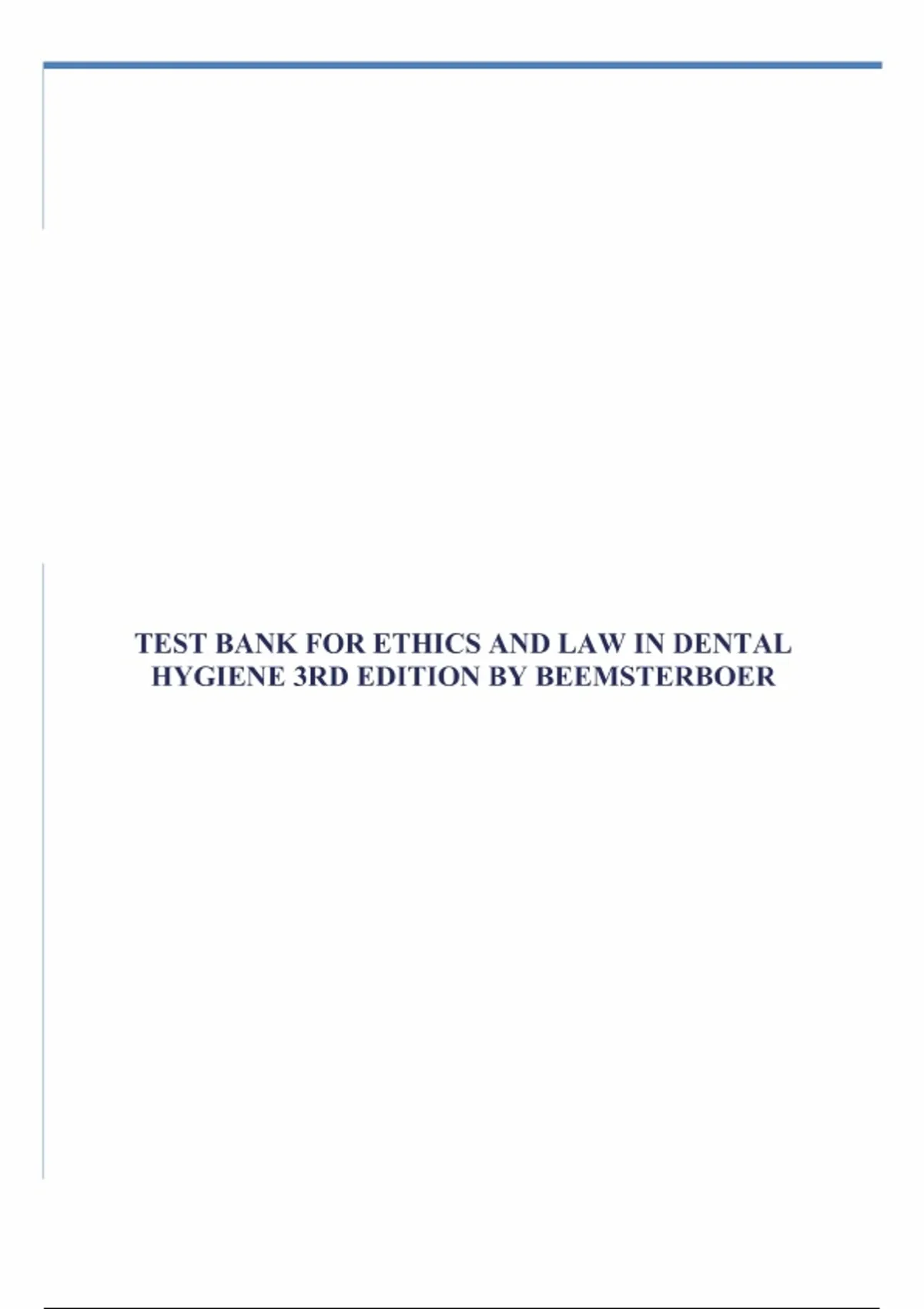 TEST BANK FOR ETHICS AND LAW IN DENTAL HYGIENE 3RD EDITION BY BEEMSTERBOER