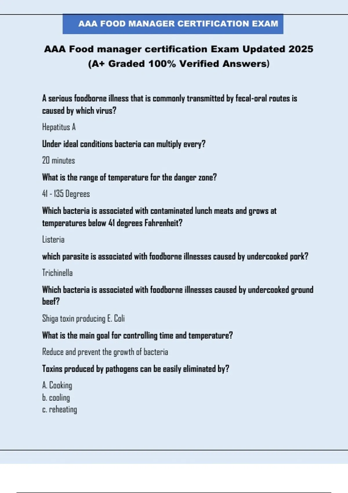 , AAA FOOD MANAGER CERTIFICATION EXAM