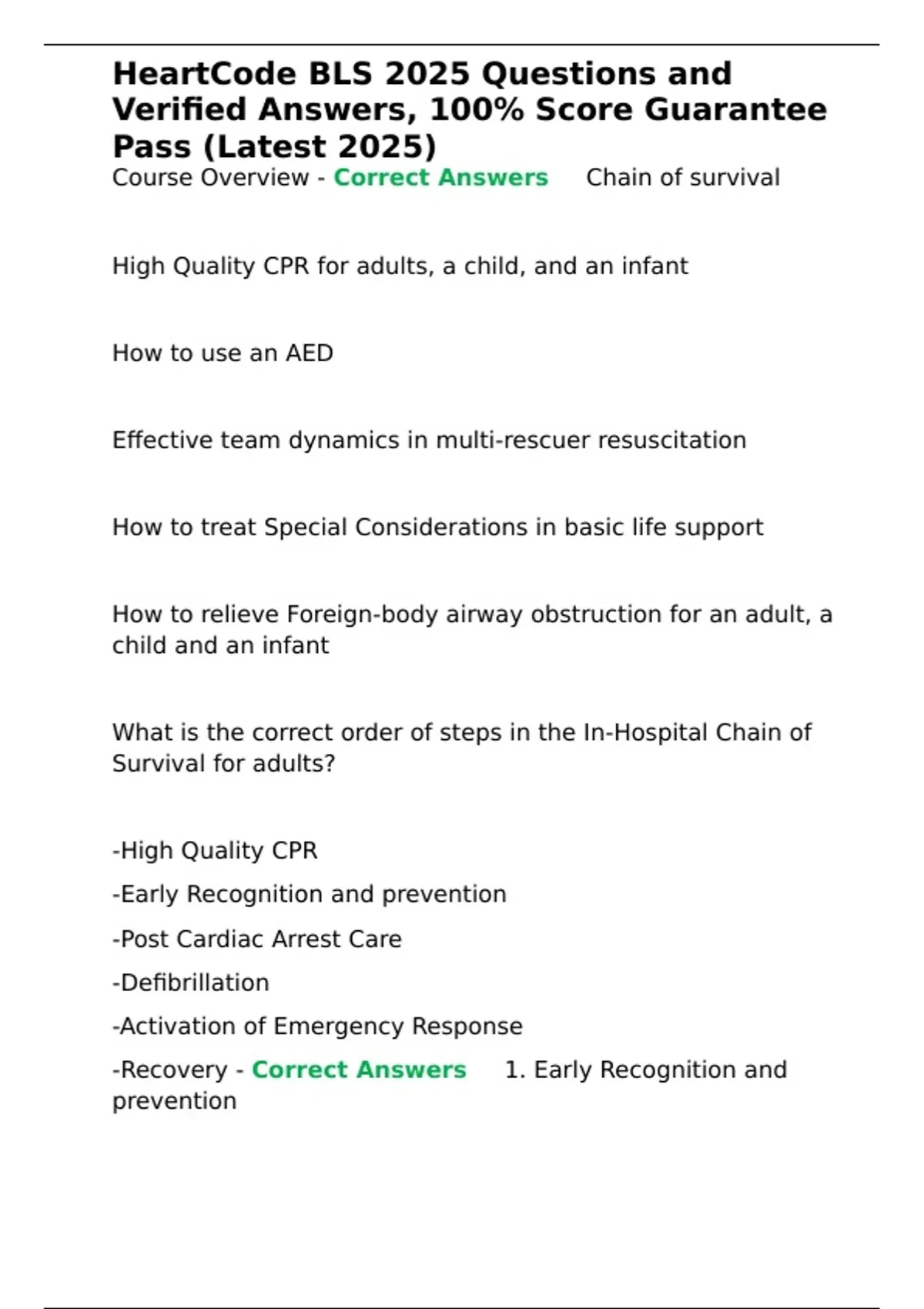 Course Overview - Correct Answers ✅Chain of survival