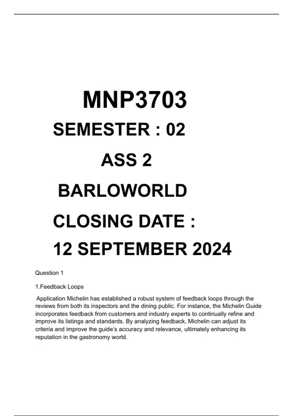 MNG3702 ASSIGNMENT 2, SEMESTER 2 • This assessment is based on chapters 10, 11, 12, 13 and 14 of the prescribed book and the corresponding lessons in the study guide. • Assignment DUE – 20 September 2025