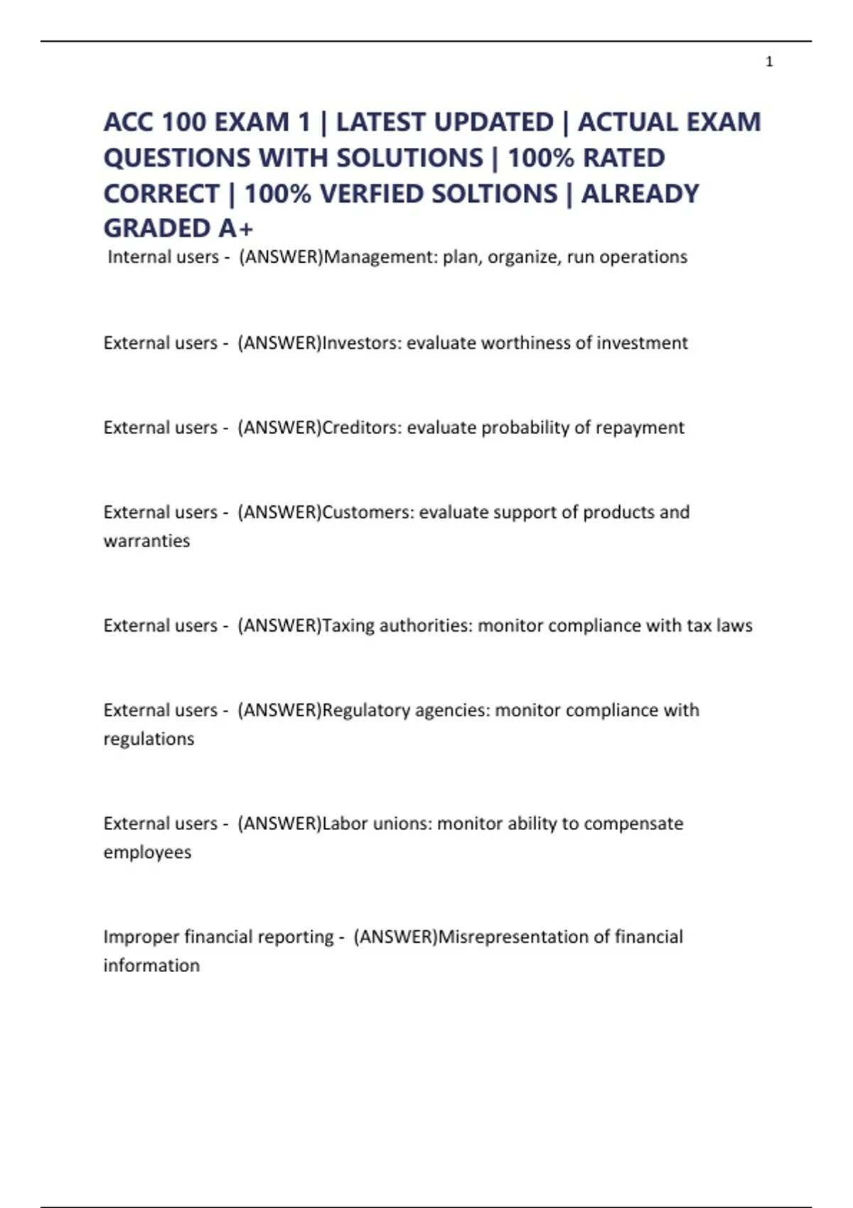 ACC 100 EXAM 1 | LATEST UPDATED | ACTUAL EXAM