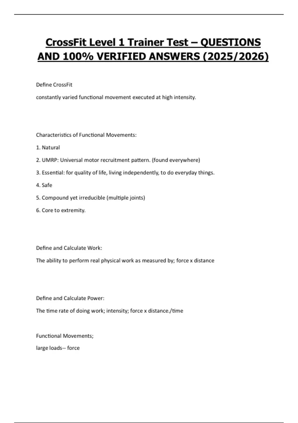 CrossFit Level 1 Trainer Test – QUESTIONS AND 100% VERIFIED ANSWERS (2025/2026)
