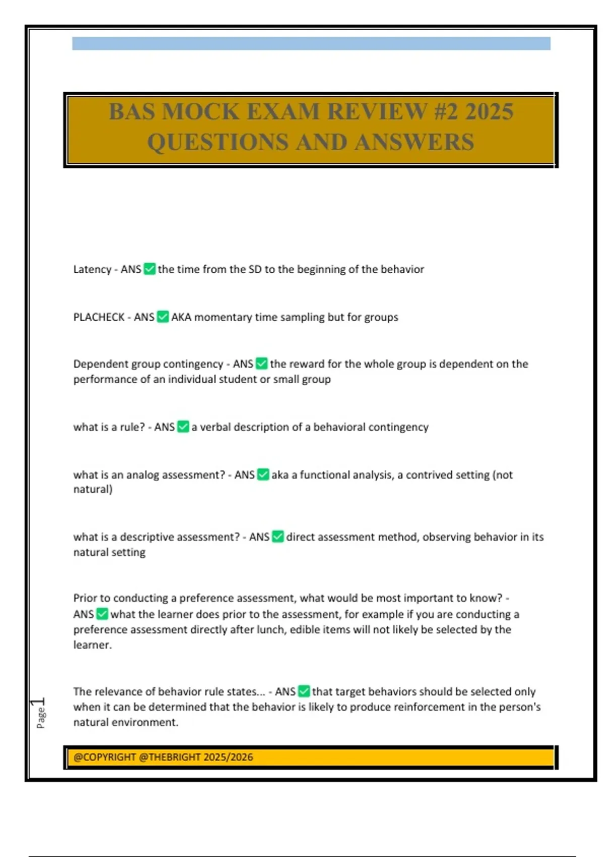 BAS MOCK EXAM REVIEW #2 2025 QUESTIONS AND ANSWERS