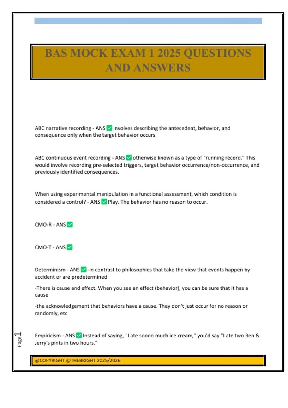 BAS MOCK EXAM 1 2025 QUESTIONS AND ANSWERS