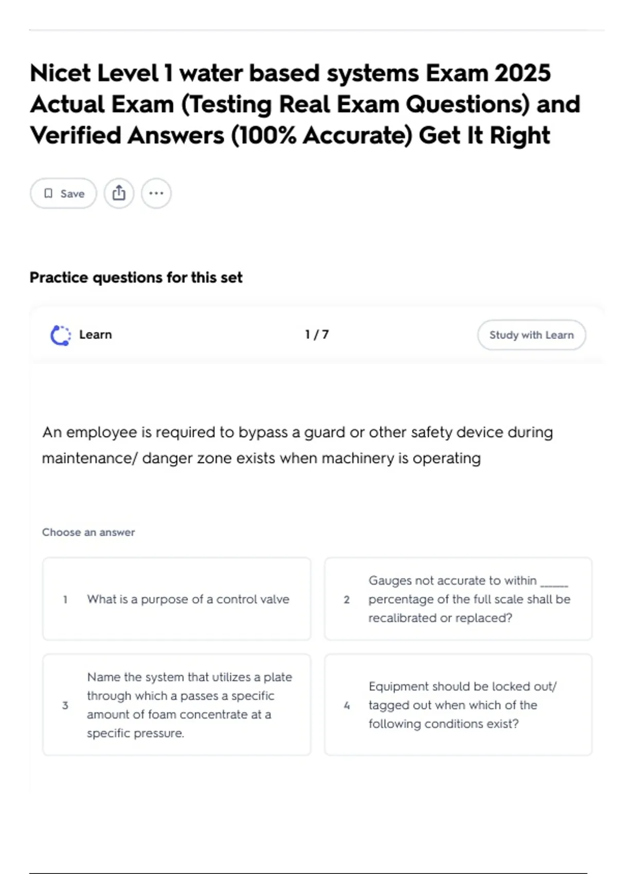 Nicet Level 1 water based systems Exam 2025 Actual Exam (Testing Real Exam Questions) and Verified Answers (100% Accurate) Get It Right