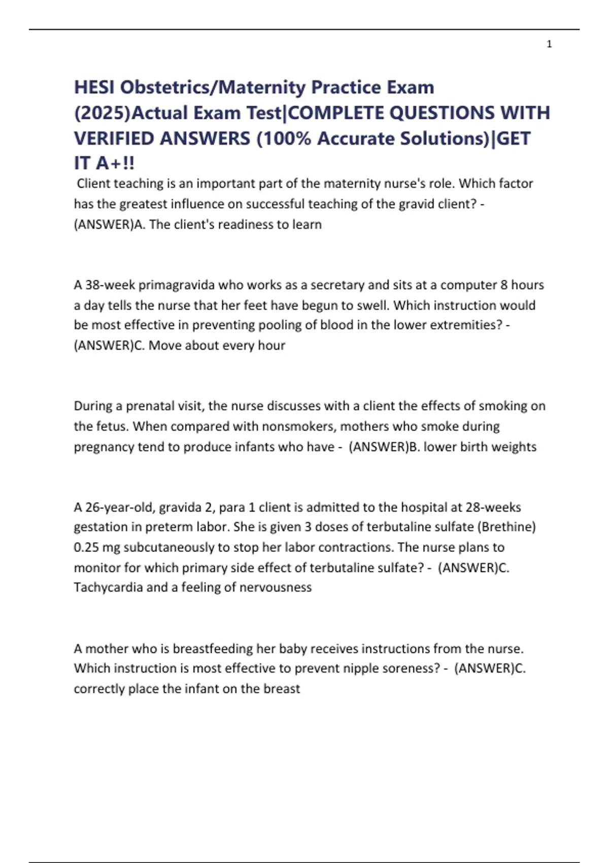 HESI Obstetrics/Maternity Practice Exam (2025)Actual Exam Test|COMPLETE QUESTIONS WITH VERIFIED ANSWERS (100% Accurate Solutions)|GET IT A+!!