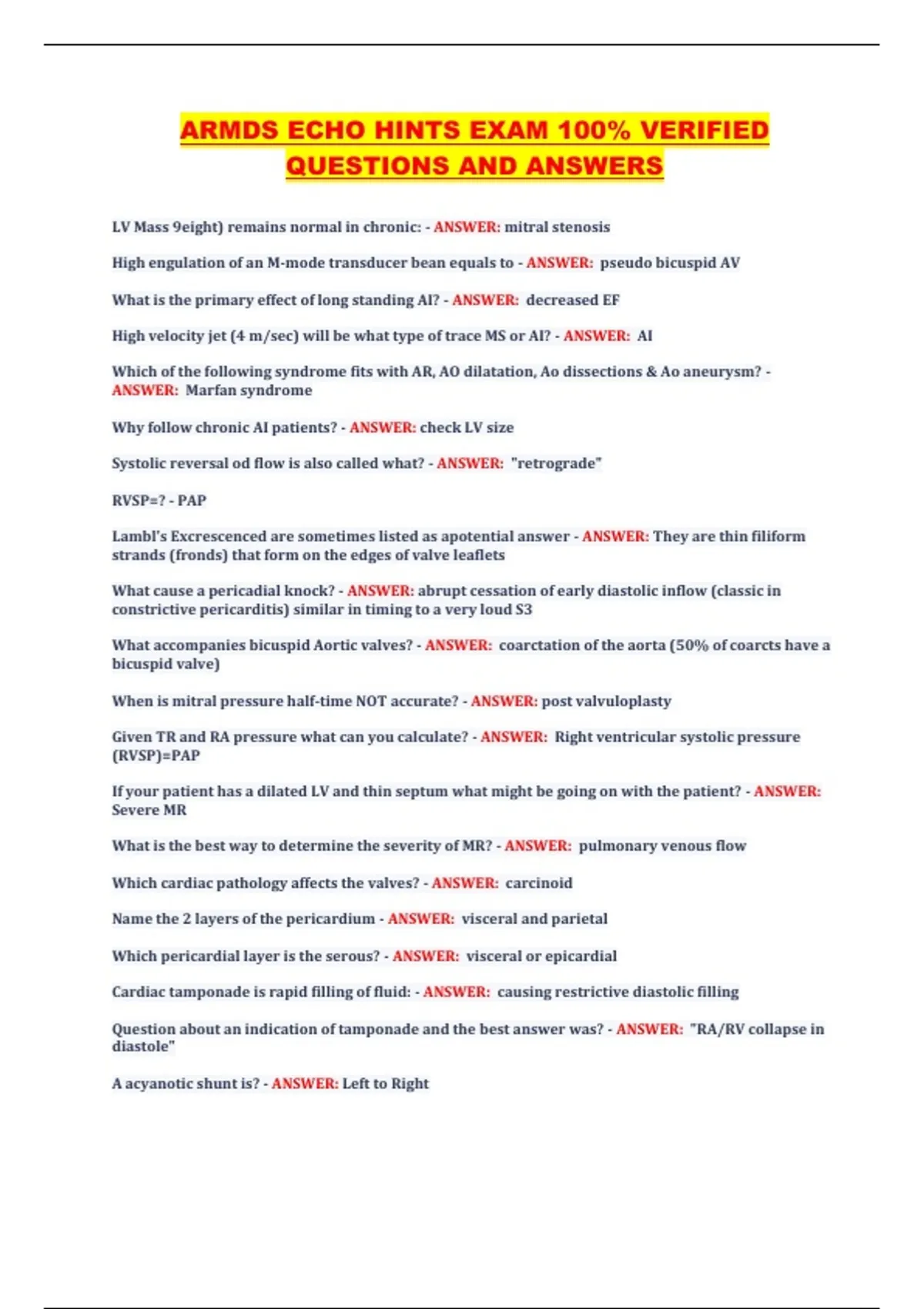 High engulation of an M-mode transducer bean equals to - ANSWER: pseudo bicuspid AV
