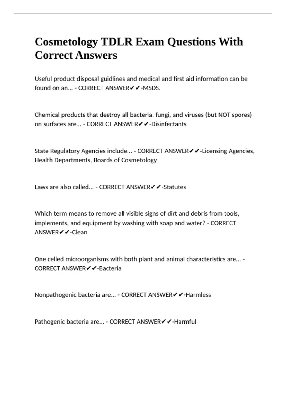 Cosmetology TDLR Exam Questions With Correct Answers.