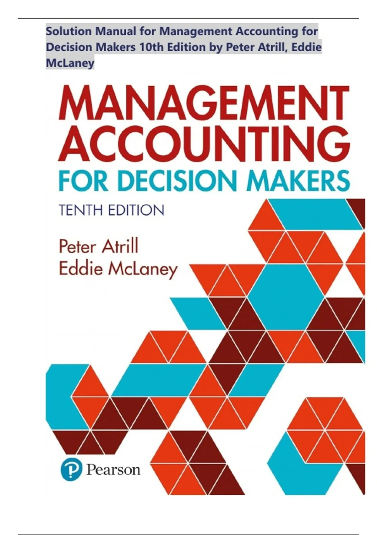 Solution Manual for Management Accounting for Decision Makers 10th Edition by Peter Atrill, Eddie McLaney ||ISBN: 9781292349459||All Chapters |Updated Edition| Complete A+ Guide