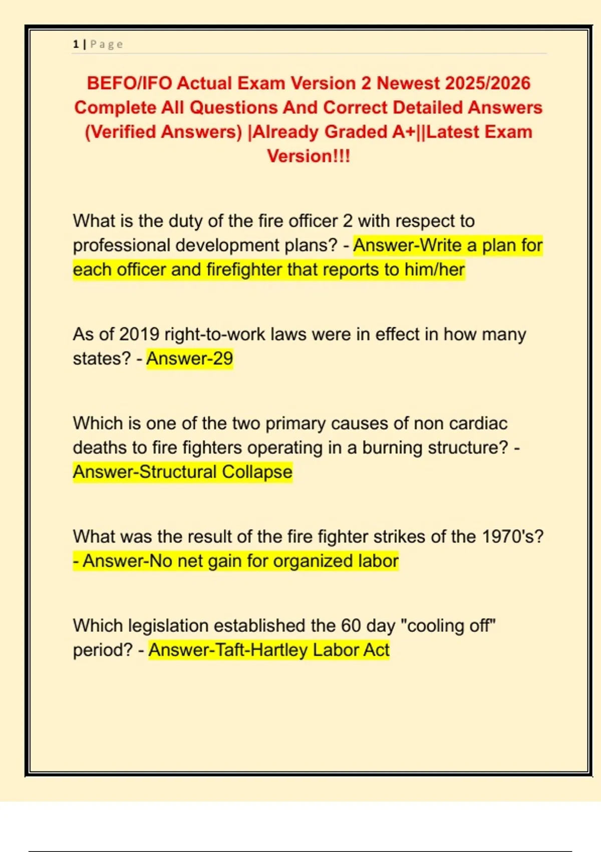 BEFO/IFO Actual Exam Version 2 Newest 2025/2026